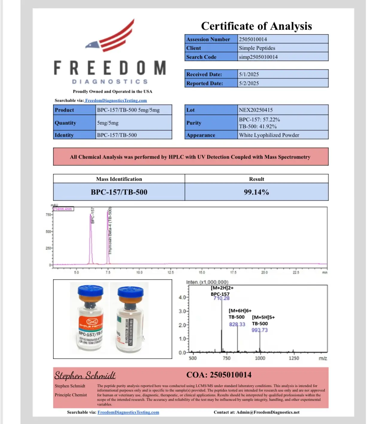 BPC-157/TB-500 Blend is provided strictly for research use only. This product is not intended for human or animal use, clinical purposes, diagnostic work, or consumption. Qualified professionals must conduct all research in proper laboratory environments and in compliance with applicable regulations and guidelines.