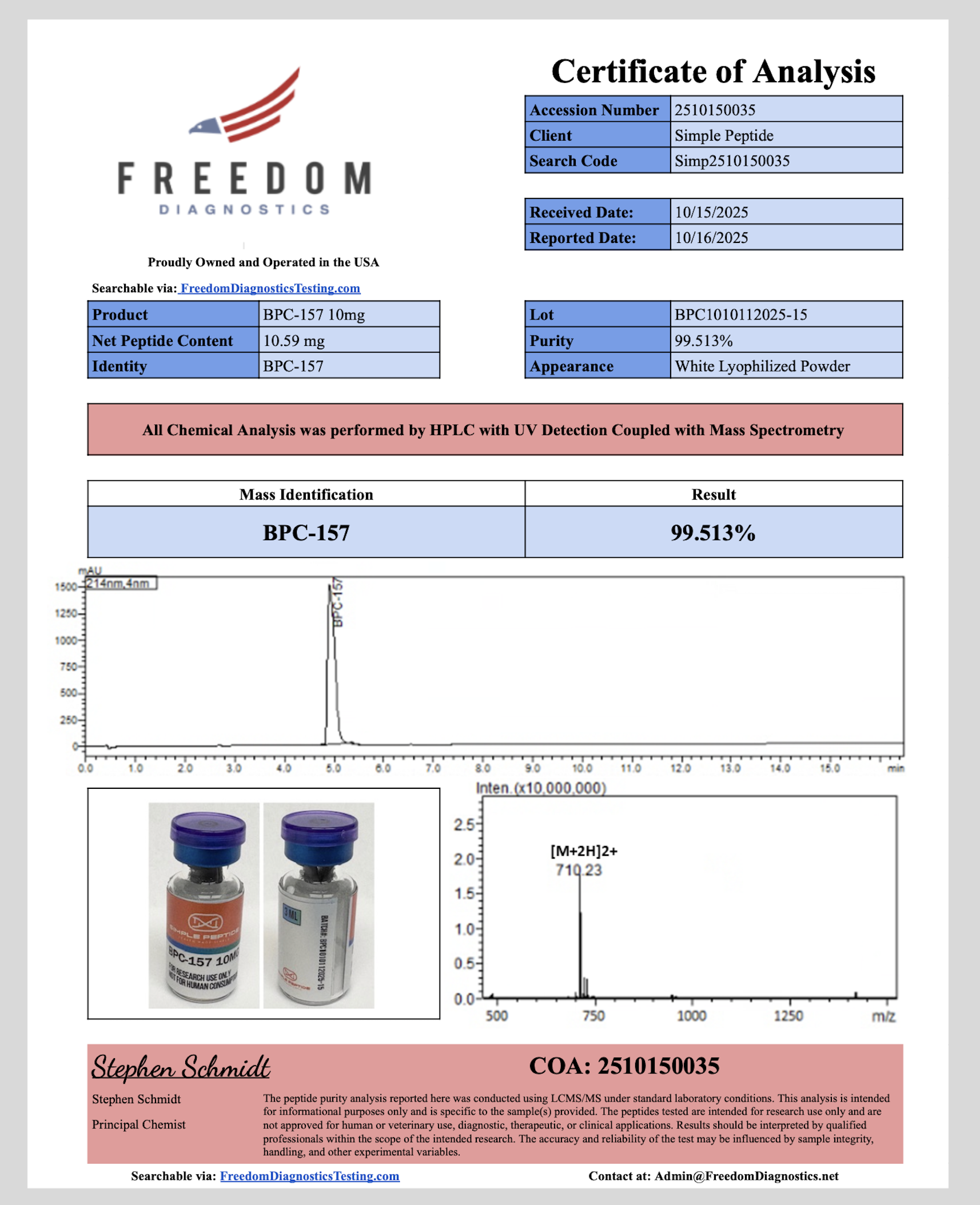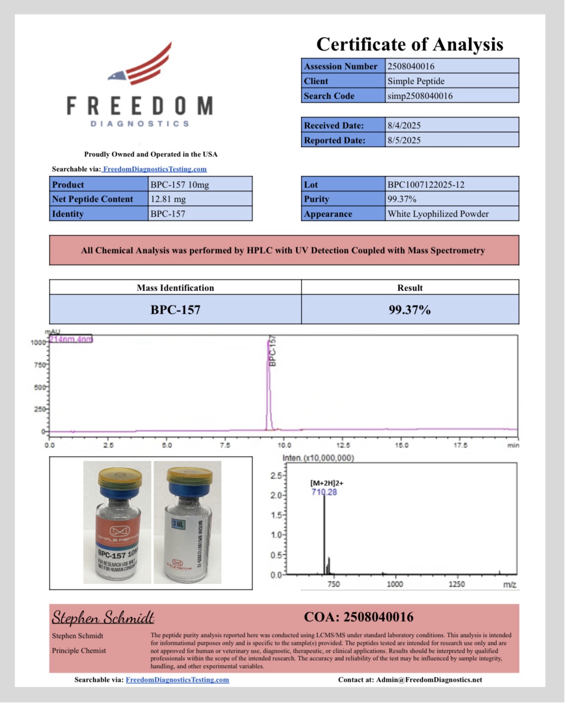 Each batch of BPC-157 meets pharmaceutical-grade quality standards to support consistency and reliability in research. However, the compound is strictly designated for laboratory research use only. It is not intended for human or animal use, and no dosing or administration information is provided.
