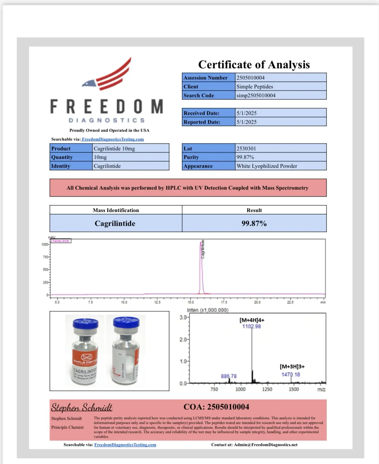 Ongoing scientific research continues to include Cagrilintide in peptide focused laboratory studies. Its defined sequence, stable behavior, and suitability for controlled research models make it a useful tool for advanced experimental work.