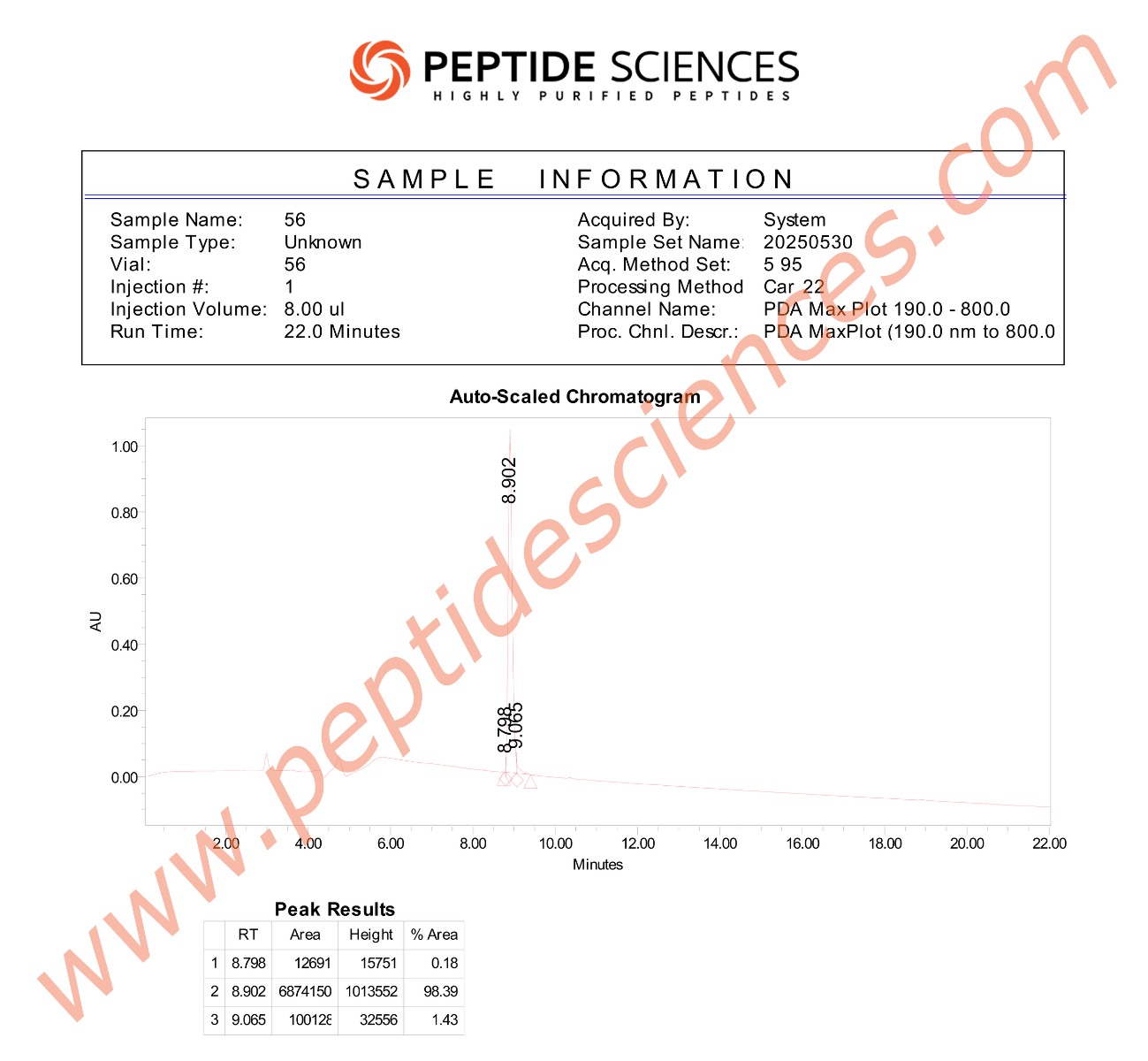 When you purchase from PeptideScience, you are buying directly from the industry leader in research peptides. We understand that the integrity of your experimental results depends entirely on the chemical purity of your compounds.