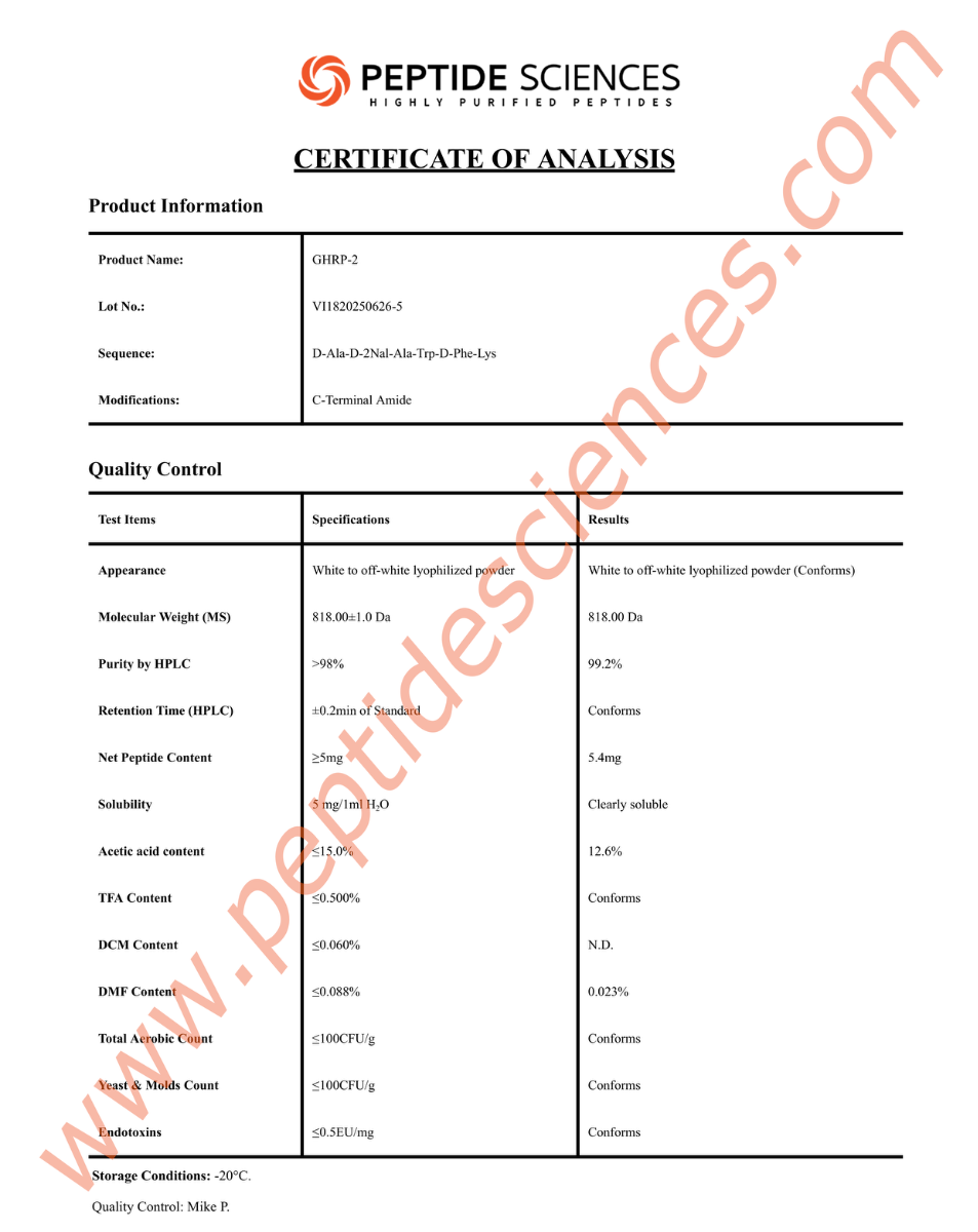 Accurate data depends on the purity of your reagents. We ensure every vial of GHRP-2 meets the strictest laboratory standards.