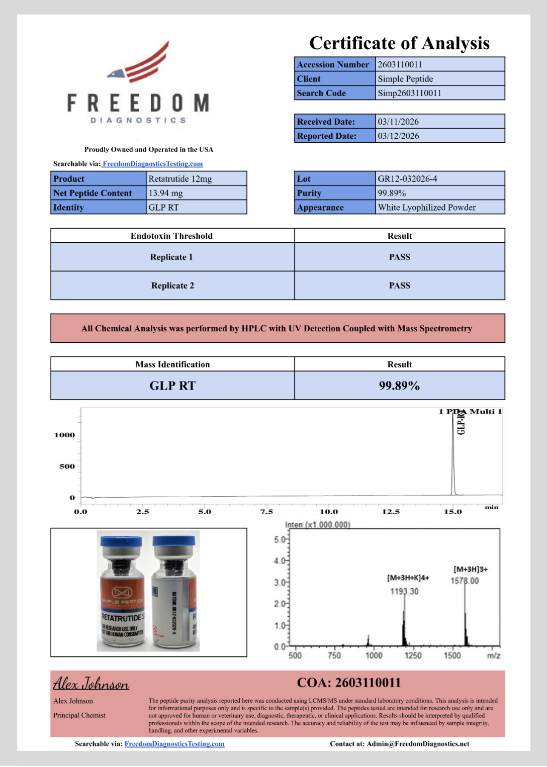 Researchers value this research compound for its defined structure and consistent composition. Its tri-agonist profile allows laboratories to compare signaling behavior across multiple receptor targets within a single experimental framework. Therefore, SP-3RT supports research approaches that emphasize controlled variables, repeatable study design, and clear data interpretation.